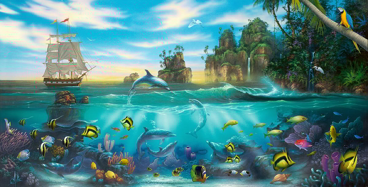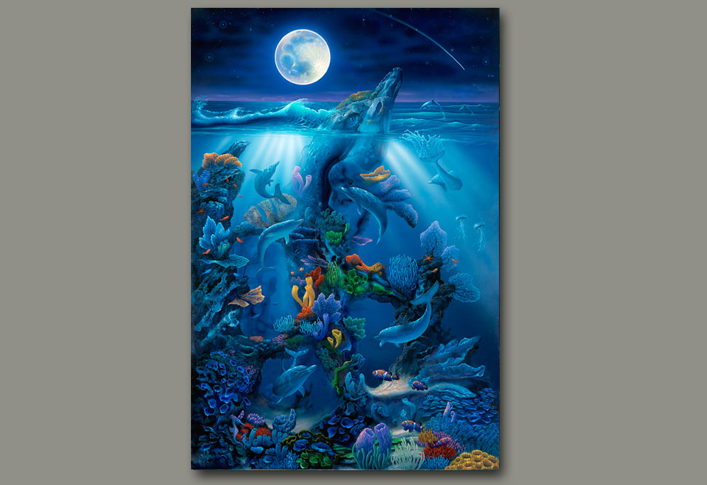 David Miller's dolphin paintings capture the grace, intelligence, and playful spirit of these beloved marine mammals. His deep connection to ocean life, combined with countless hours of SCUBA diving, allows him to portray dolphins with remarkable authenticity and emotion. Each painting celebrates the beauty of dolphins in their natural habitat.